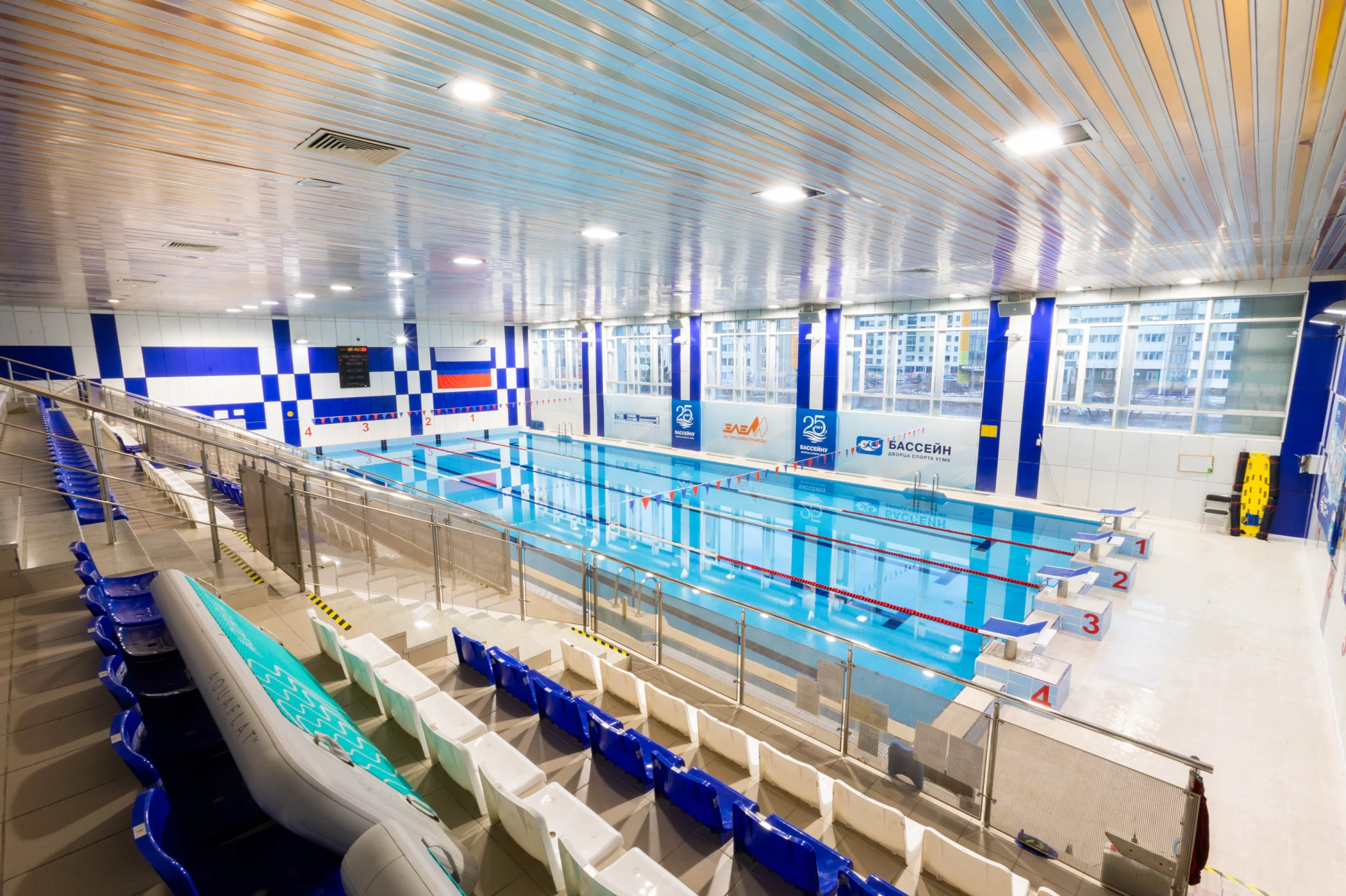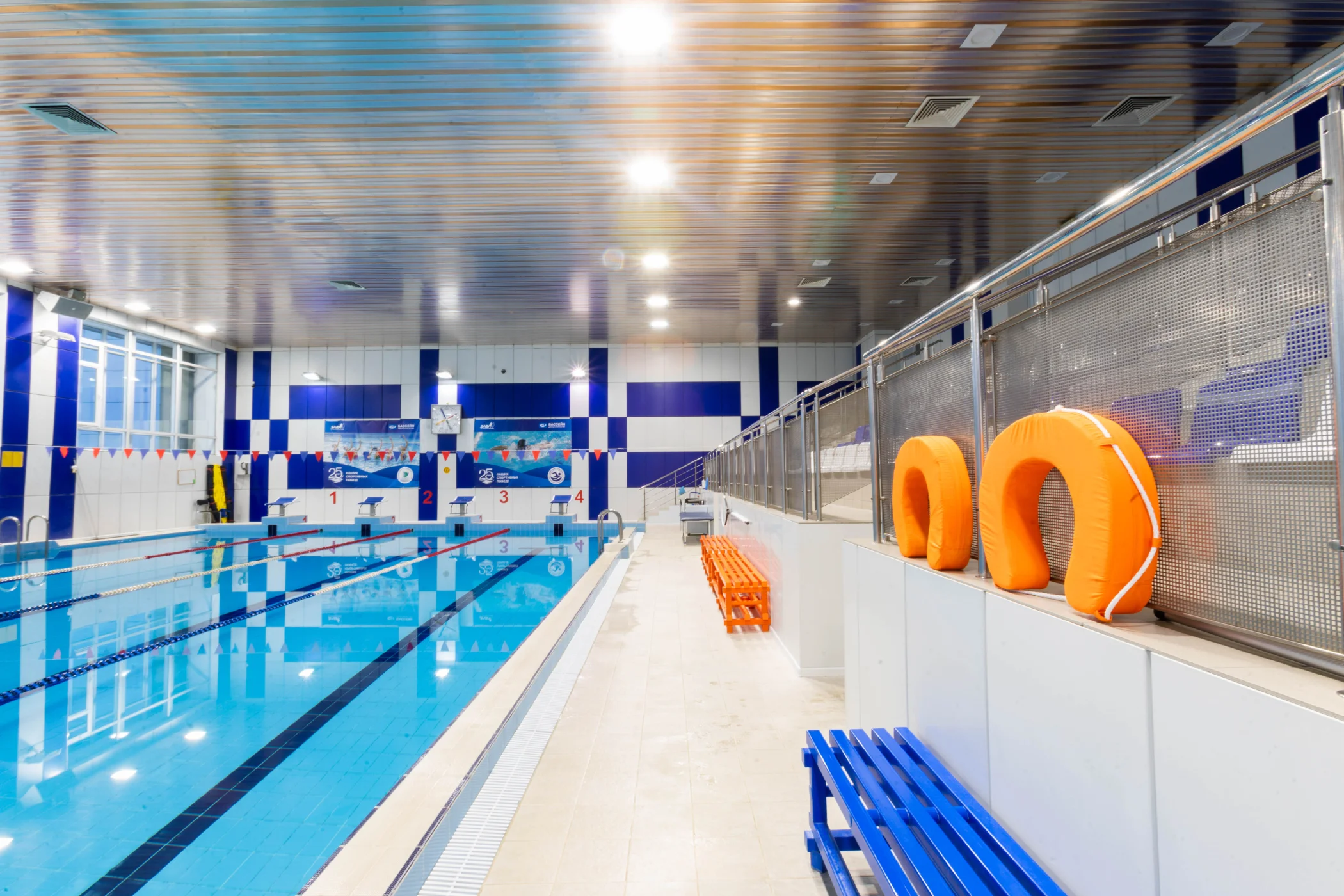 Бассейн включает дорожки для взрослых и отдельную зону для детей от 3-х лет. Вода в бассейне проходит комплексную систему очистки и поддерживается на оптимальной температуре, что создает приятные и безопасные условия для тренировок и оздоровления.