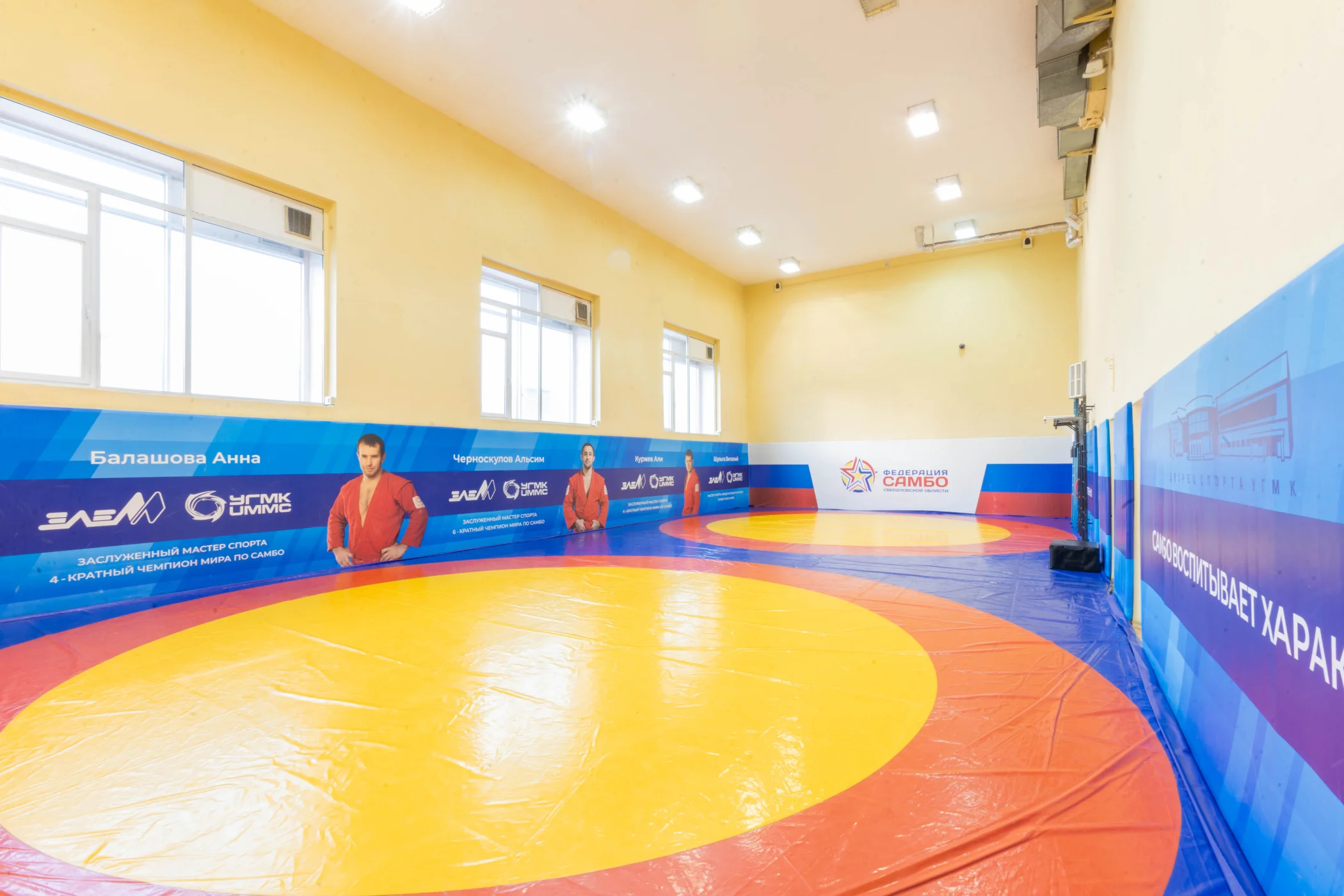 Зал самбо отвечает современным требованиям для проведения учебно-тренировочного процесса. Общая площадь зала 150 кв. м.